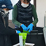 なるべく葉っぱに傷が入らないように細心の注意を図りながら、数種類を丁寧にバランスよくミックスし、鮮度保持袋に包装しています。